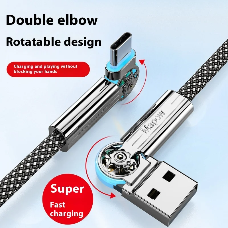 Fast Charge USB Type C Cable 180 Degree Rotation Elbow Gaming Cable for Xiaomi Redmi Honor Huawei Samsung Phone Charger Cable