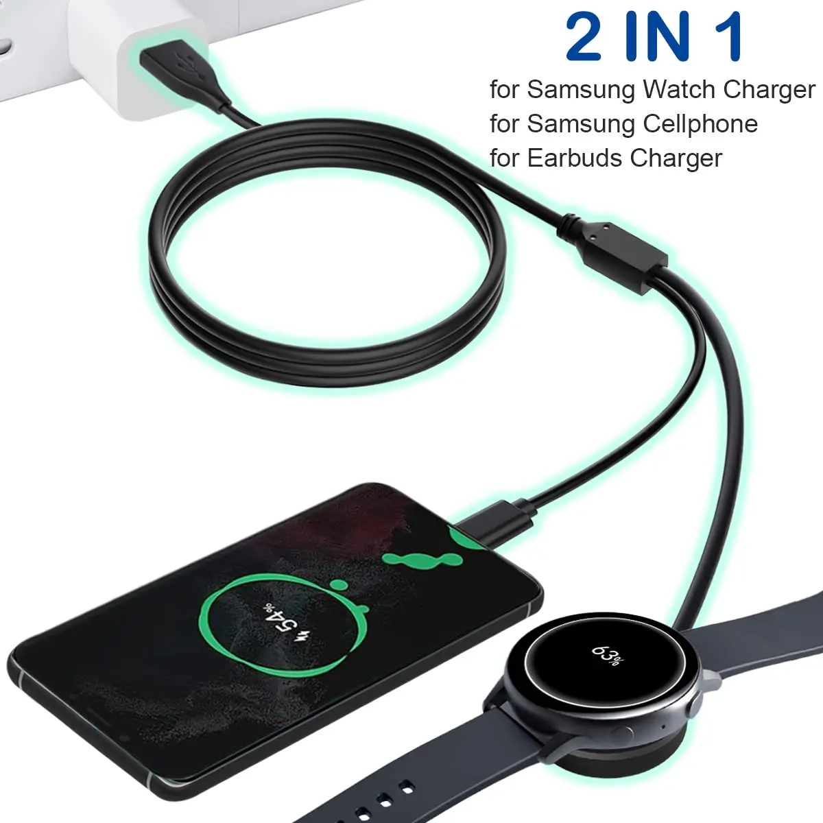 2 in 1 Galaxy Watch Charger Compatible with Samsung Galaxy Watch 6 /6 Classic /5 Pro/5/4/3/Active2/1, USB C Charging Phone Cable