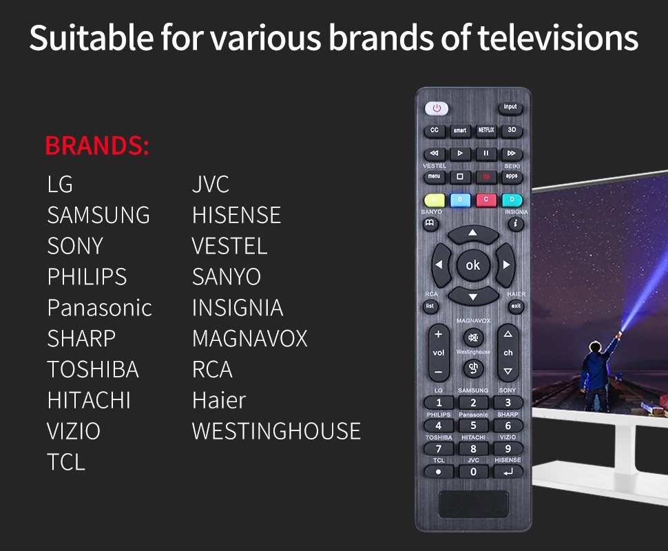 Universal G006 TV Remote Repacement Control for LG, Samsung, TCL, Philips, Vizio, Sharp, Sony, Panasonic, Sanyo, Insignia, Toshib