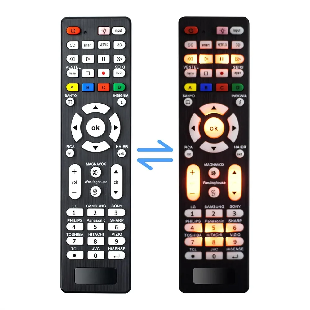 Backlight Universal TV Remote Control for Samsung LG Vizio TCL Hisense Sony Philips Sharp Panasonic Toshiba JVC Hitachi TVs
