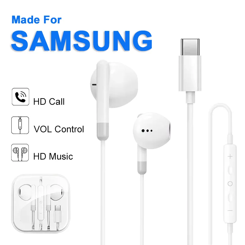 Wired Headphones For Samsung Galaxy S24 S23 S21 S22 S20 Plus Type USB C 3.5mm Jack Earphones A54 A34 A53 Note 20 10 Accessories