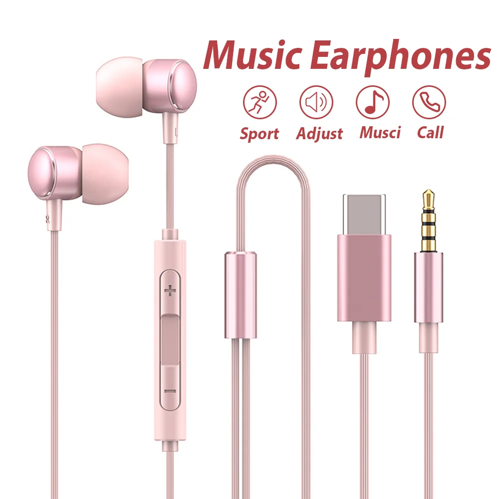 USB Type C Wired Earphone HiFi Stereo With Mic Headphone For Samsung Galaxy S24 XIAOMI HUAWEI 3.5mm Jack Headset For iPhone15 16