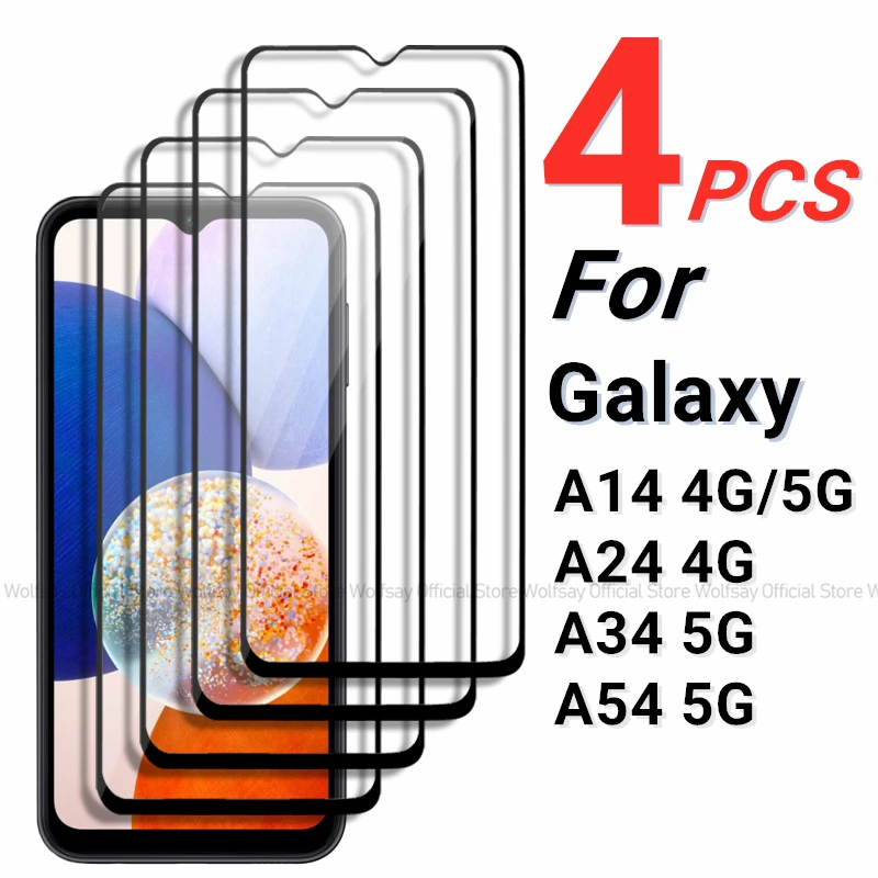 2/4PCS Tempered Glass For Samsung Galaxy A14 Screen Protector For Samsung Galaxy A14 A24 A34 A54 5G Full Glue Cover Phone Film