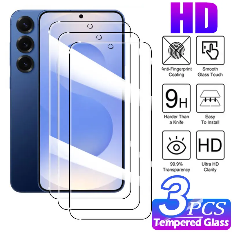 3Pcs HD Screen Protector Glass for Samsung Galaxy S21 FE S22 S23 Plus Full Cover Tempered Glass For Samsung S24 S25 Ultra Film