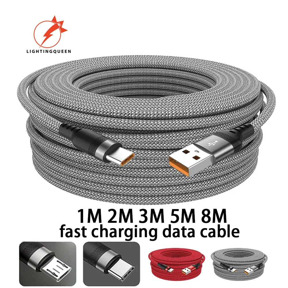USB TYPE C/Micro USB Fast Charge Cable 3m 5m 8m USB C Android Extend Charging Cable for Huawei Samsung Xiaomi OPPO OnePlus Vivo