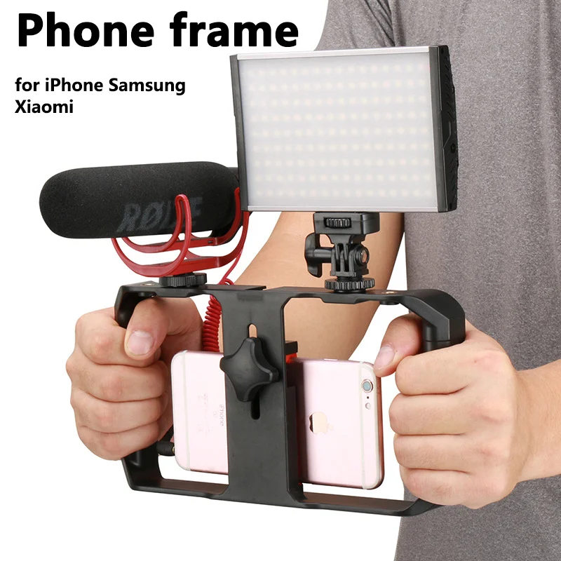 Universal SmartPhone Cage Protective Case With Cold Mount for iPhone Xiaomi Samsung Small U Rig Hand Grip Phone Video Stabilizer