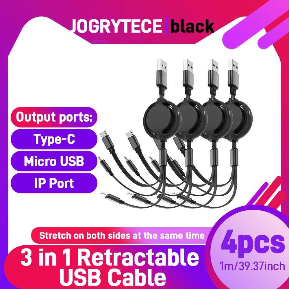 4pcs 3 in 1 black retractable USB cable iPhone fast charging cable Samsung Huawei Xiaomi multi-port multi-charging cable
