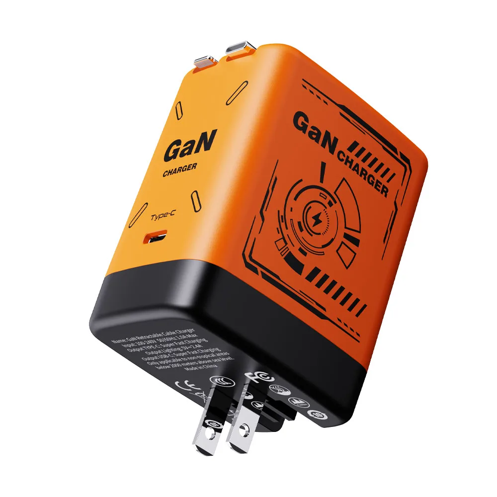 GaN 120W Ultra Fast Charger With Retractable Type-C Lightning Cable Fast Charging Adapter For iPhone16 iPad 14 13 Samsung Huawei