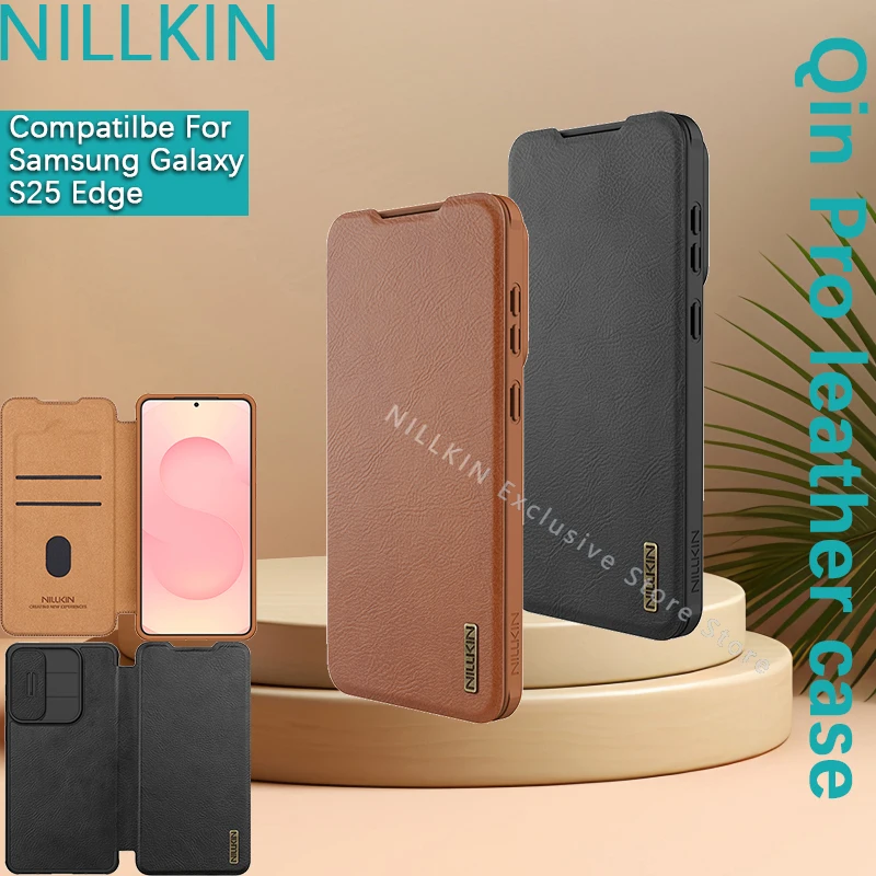 Nillkin For Samsung Galaxy S25 Edge Qin Pro leather Case Lens sliding window cover anti drop airbag flip cover phone case shell