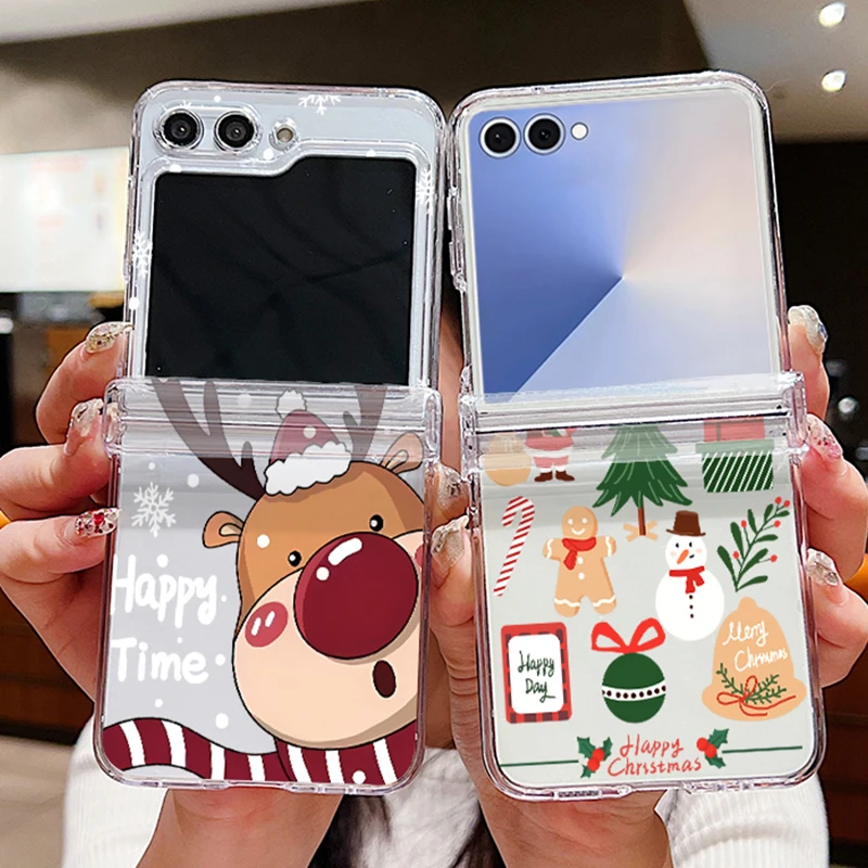 Christmas Deer Snowman Clear Phone Case For Samsung Galaxy Z Flip 7 FE 6 5 4 3 5G Folding Hard Cover For Samsung Z Flip7 Flip6