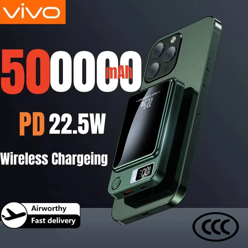 VIVO 500000mAh Magnetic Wireless Power Bank Fast Charger For Magsafe Portable Auxiliary Battery Pack For iphone Huawei Samsung