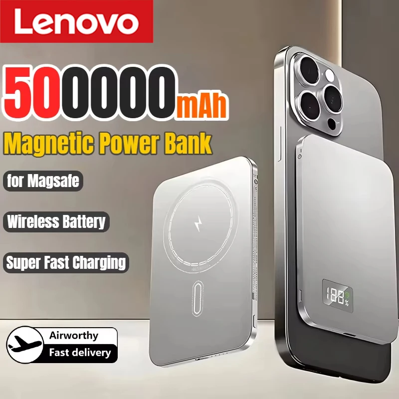 Lenovo 500000mAh Magnetic Power Bank Portable Wireless PD22.5W Fast Charging External Battery for Magsafe For iPhone Samsung