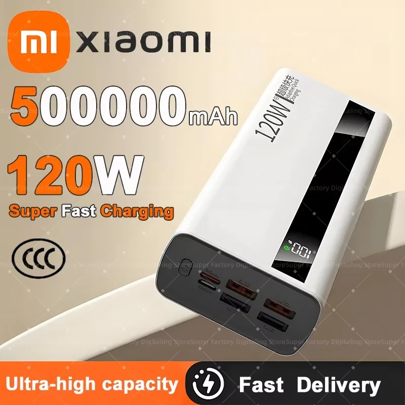 Xiaomi 500000mAh High Capacity PowerBank 120W Super Fast Charging Portable External Battery Powerbank For iphone Samsung Huawei