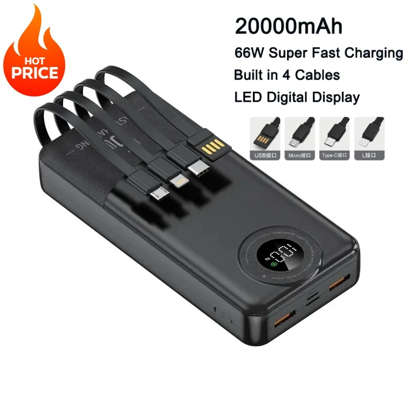 20000mAh Large Capacity 66W Fast Charging Portable Charger External Battery Power Bank for IPhone Xiaomi Samsung