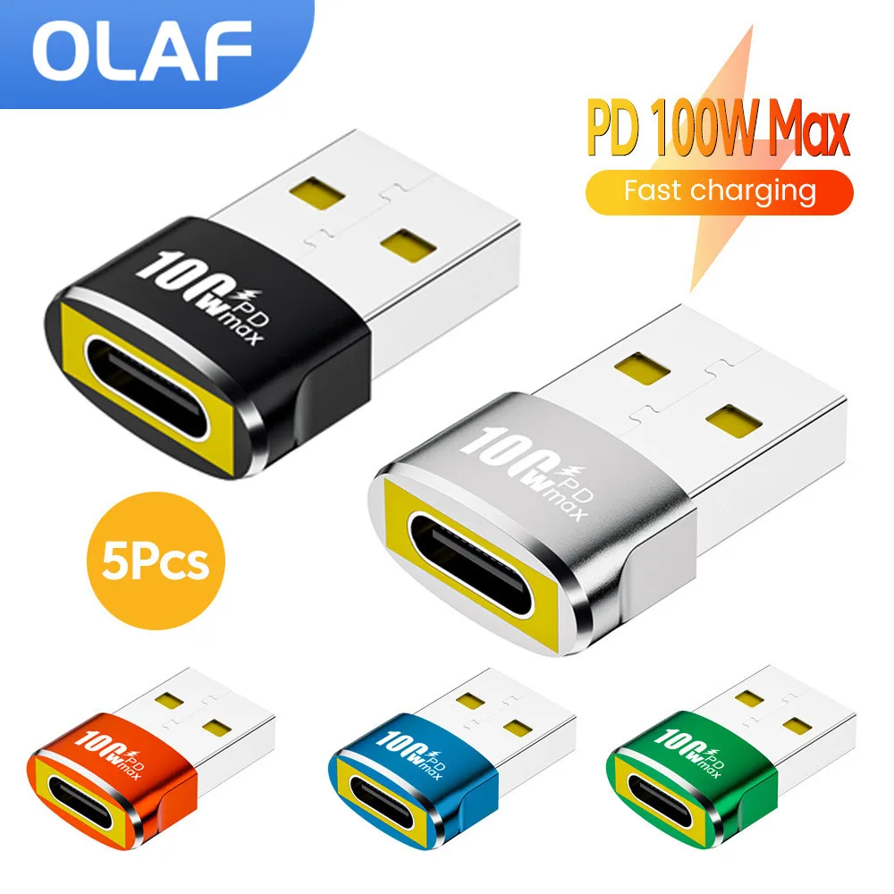 1/2/5Pcs USB To Type C OTG Adapter USB USB-C Female To USB Male PD100W Fast Charging OTG Connector For PC Macbook Samsung Xiaomi