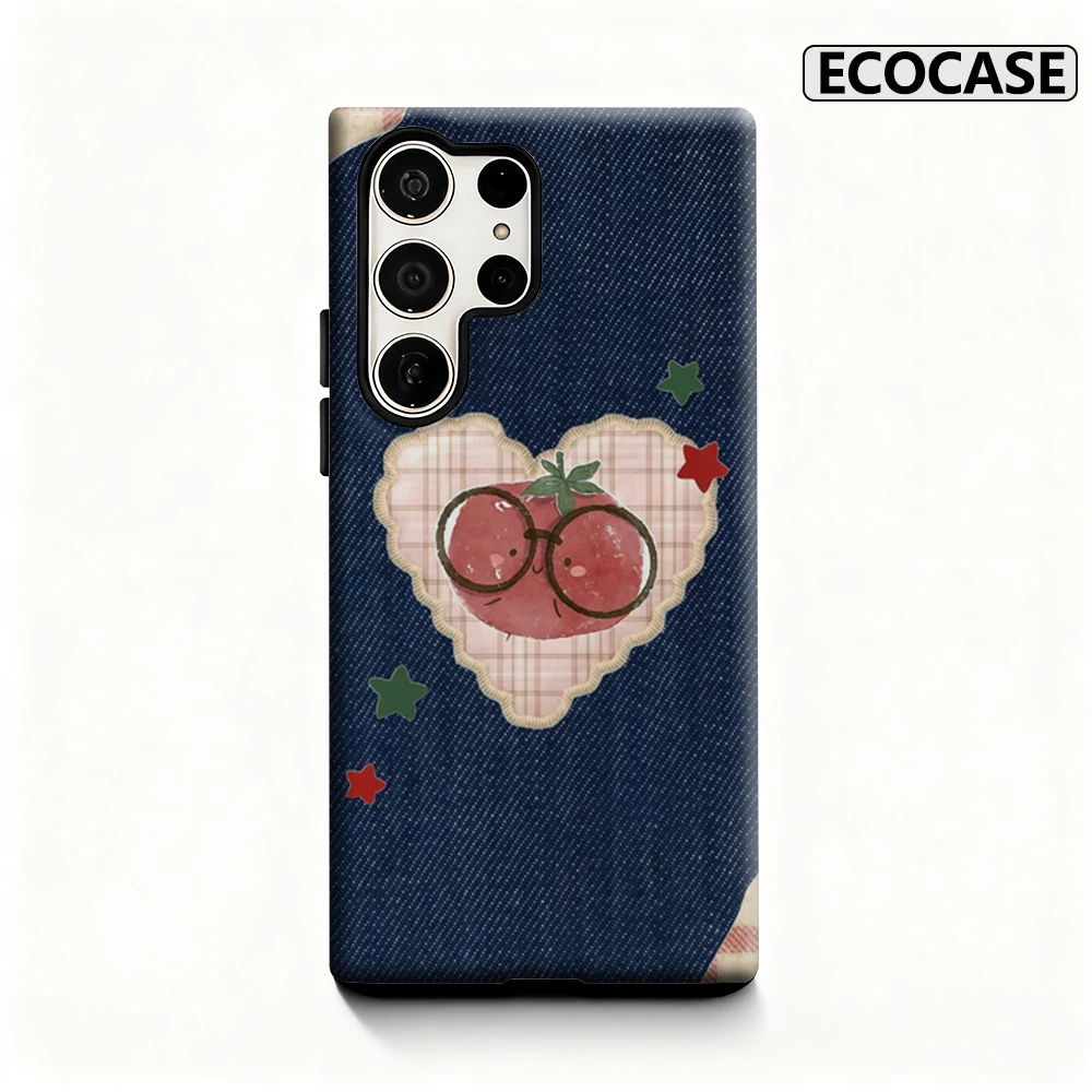 Denim Style Cute Tomato Phone Case for Samsung Galaxy S25 Ultra S24 S23 Ultra Plus Glossy Double-layer Back Cover