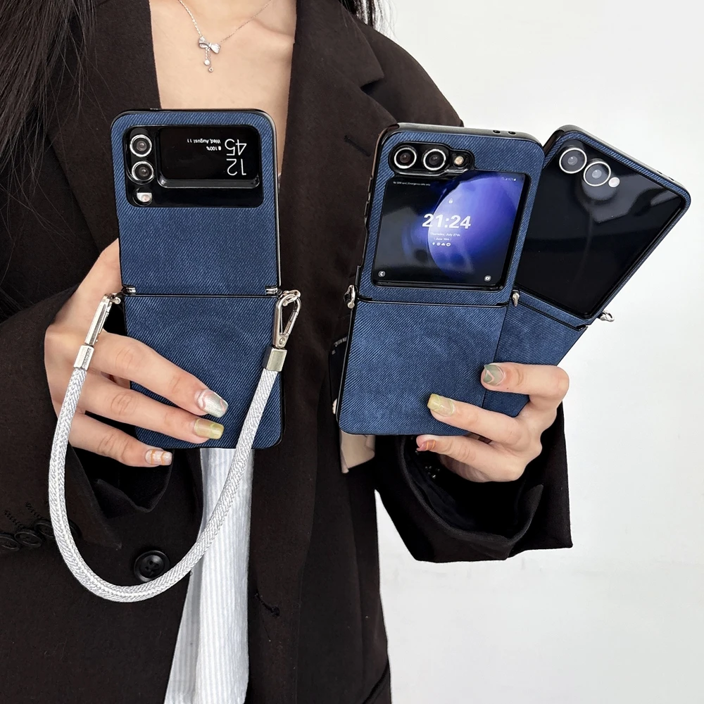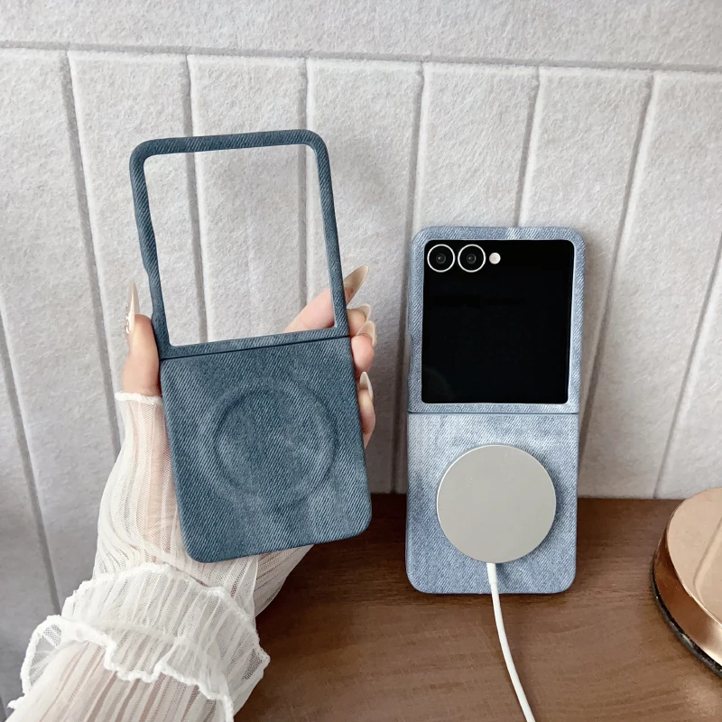 Magnetic Wireless Charging Phone Case For Samsung Galaxy Z Flip 7 6 5 4 3 Flip7 Flip6 Flip5 Flip4 Ultra Thin Denim Texture Cover