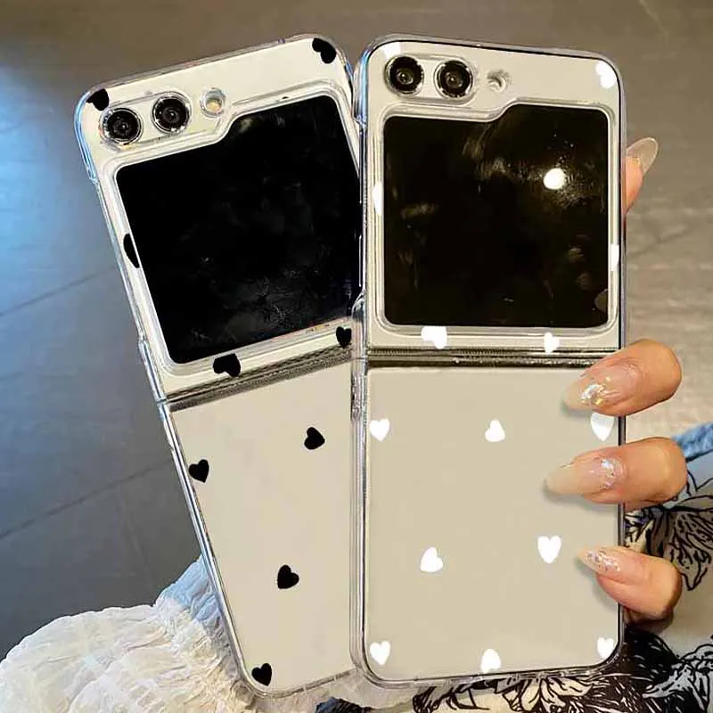 Love Heart Patterned Clear Phone Case For Samsung Galaxy Z Flip 7 6 5 4 3 5G Folding Hard Cover For Samsung Z Flip5 Flip6 Flip7