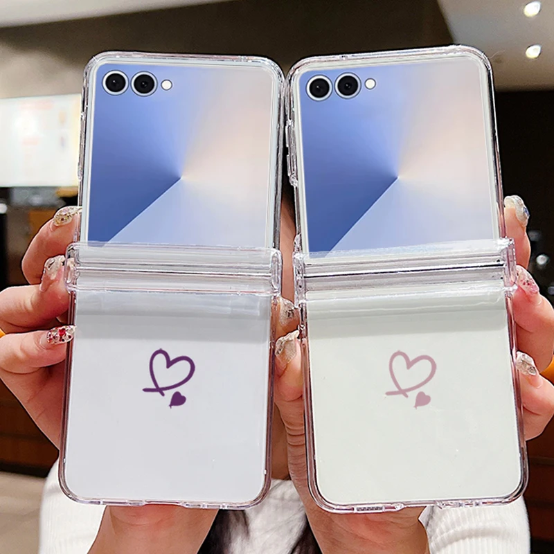 Love Heart Print Transparent Phone Case For Samsung Galaxy Z Flip7 FE Flip6 Folding Hard Cover For Samsung Z Flip 7 6 5 4 3 5G