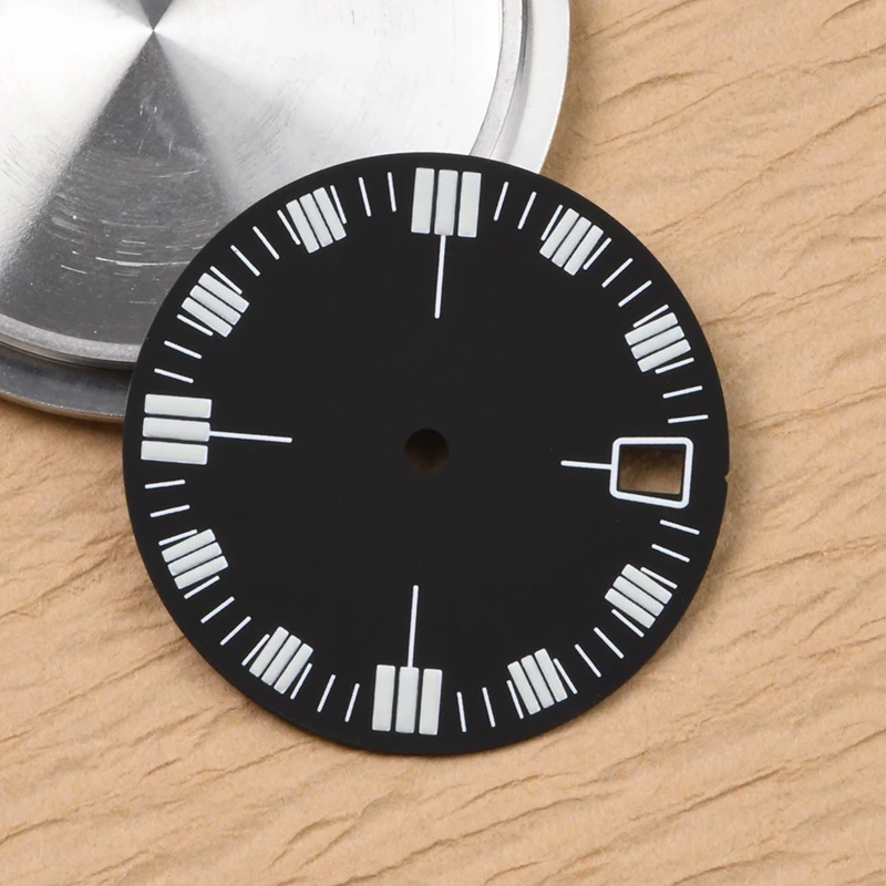 The 28.5mm double date NH36 dial green luminous bar engraved date mechanical watch NH36A dial is used for the Seiko dial