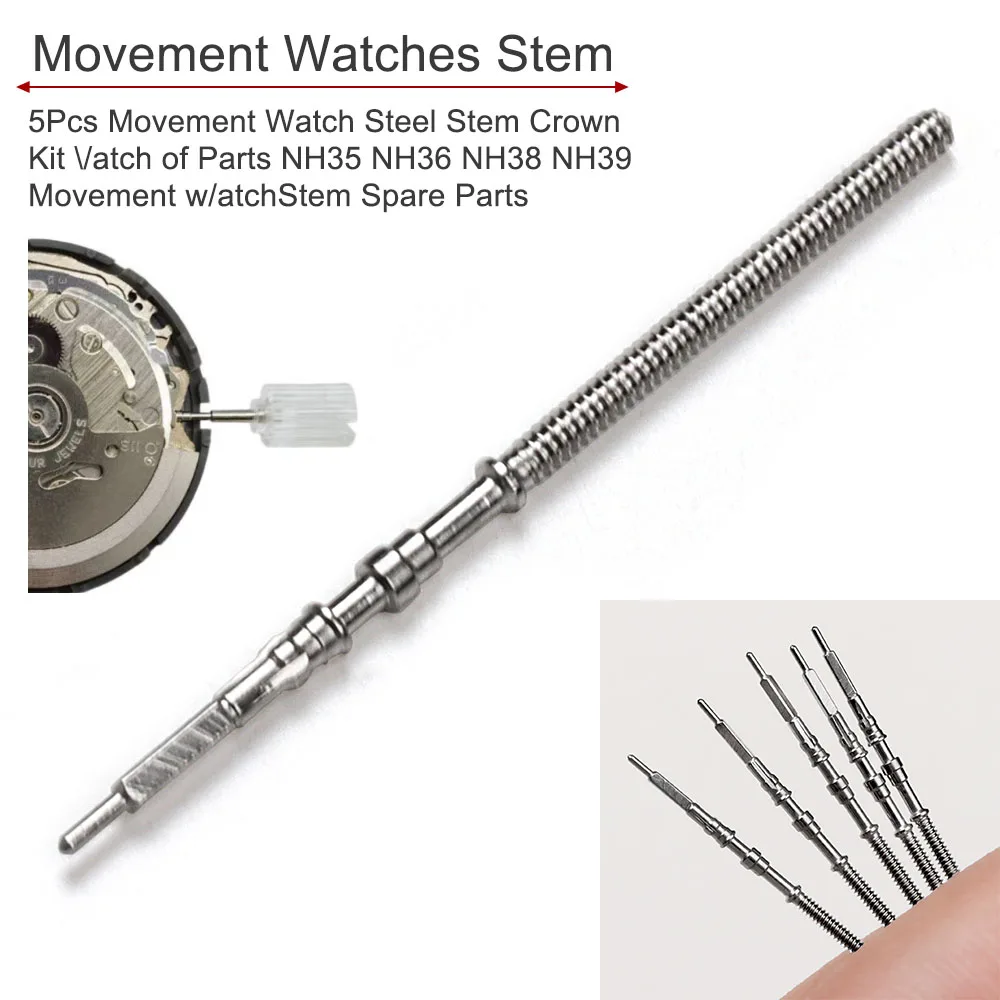 2/5/10pcs Movement Watch Steel Stem Crown Kit Watch Parts for Seiko NH34 NH35 NH36 NH38 NH39 Movement Watches Stem Spare Parts