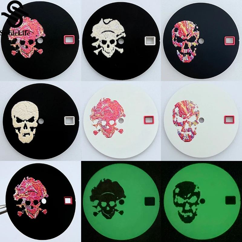 SmileLife 28.5mm Green Luminous One Piece Red Skeleton Fashion Artistic Watch Face Dial Suitable for Seiko NH35/36 Movement