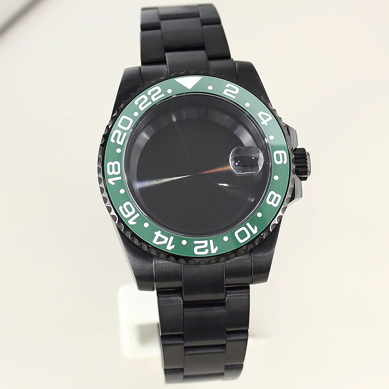 PVD Black 40mm Men's Watch Case For SUB GMT Yacht Seiko NH35 NH36 NH34 NH38 4R36 Miyota8215 Eta2824 Movts 20ATM Sapphire crystal