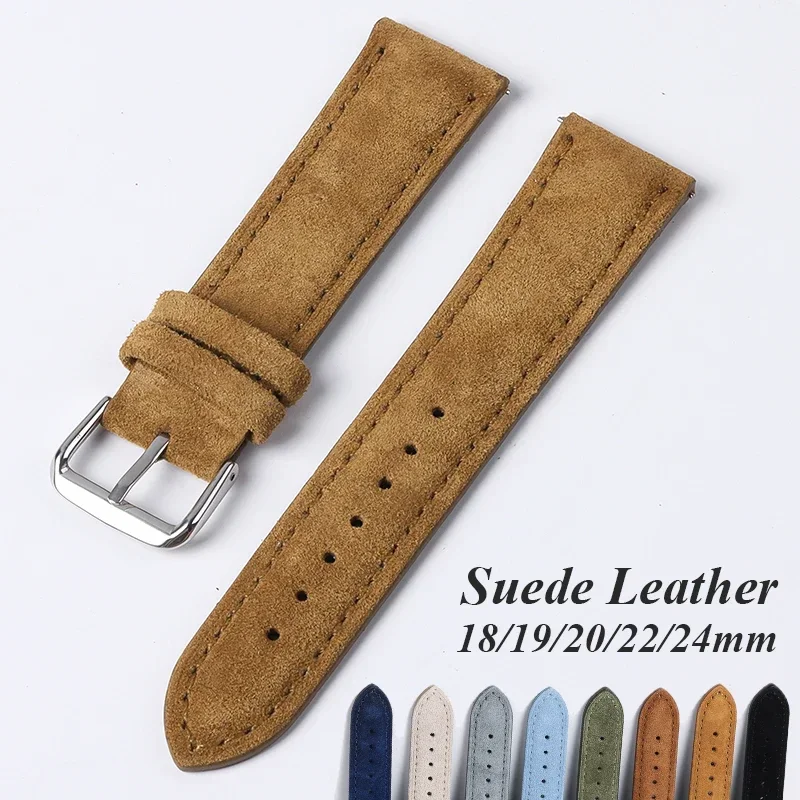 Suede Genuine Leather Watchband for Seiko Vintage Handmade Stitching Bracelet for Rolex 18mm 19mm 20mm 22mm 24mm Watch Strap  Read more