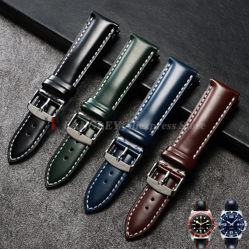 Handmade Bright Leather Strap 20mm 22mm Quick Release Men's Women Soft Bracelet Black Green Brown for Seiko for Rolex for Tudor