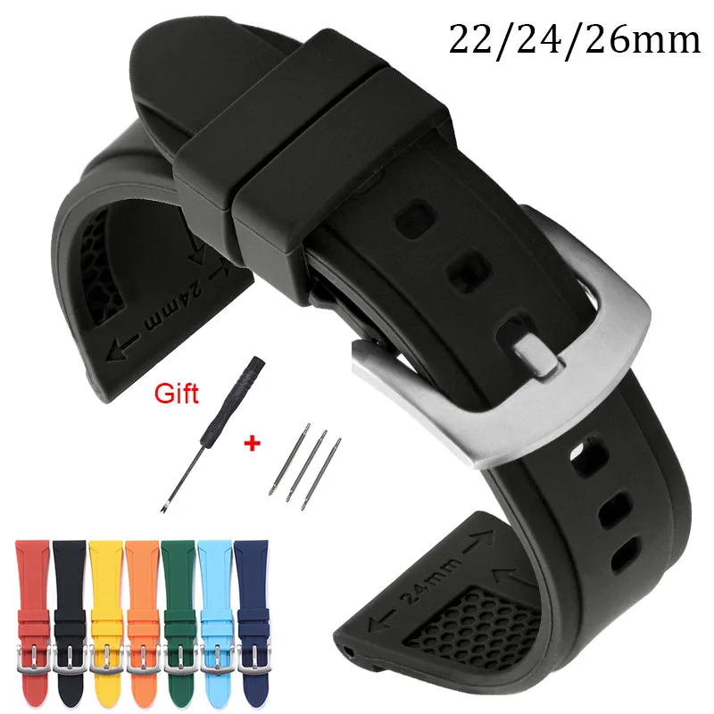 Silicone Strap 22mm 24mm 26mm Rubber Watch Band for Panerai for Seiko Bracelet Waterproof Soft Comfortable Universal Wristband