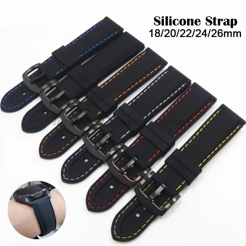 18mm 20mm 22mm 24mm 26mm Silicone Watchband for Seiko Waterproof Rubber Watch Strap Men Sport Smart Wristband Universal Bracelet