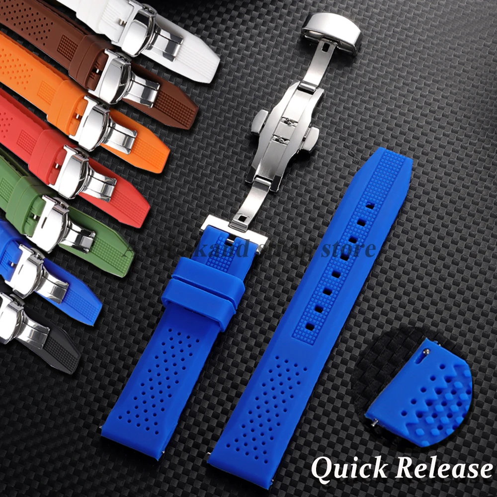 Silicone Straps 16mm 18mm 20mm 22mm 24mm for Seiko for Omega Rubber Watch Strap Quick Release Breathable Butterfly Buckle Band