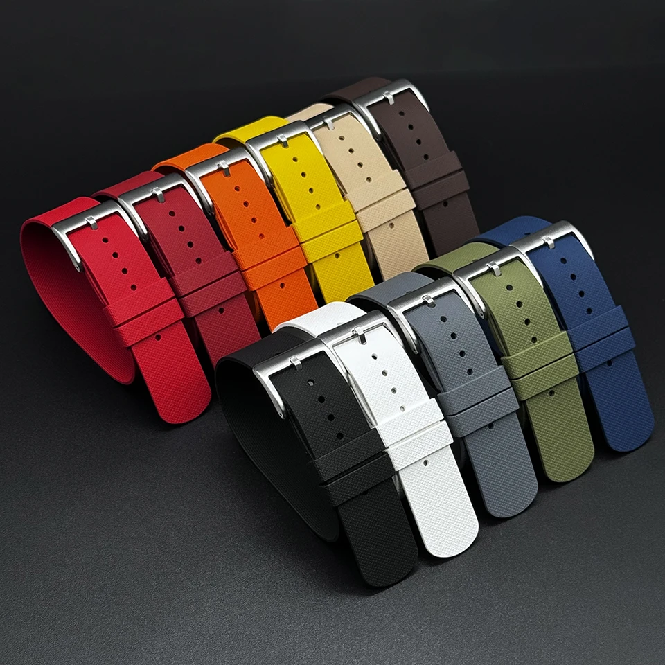 Fluoro Rubber Strap 20mm 21mm 22mm One Piece FKM Military Men Sport Watch Band for Seiko Omega Rolex Diving Universal Bracelet