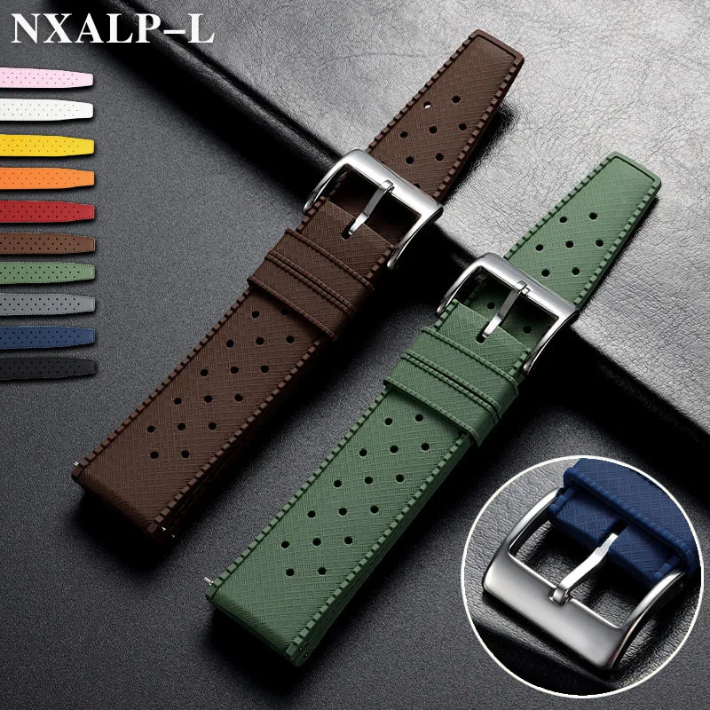 Classic Tropical FKM Rubber Watch Strap for Seiko 20mm 22mm Watchband for Oris Wristbelt for Fossil Replaement Bracelet Belt