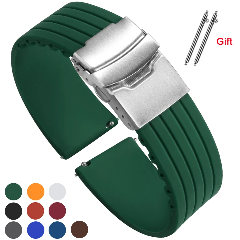 Dust-Free Rubber Waterproof Quick Release Watchband 20mm 22mm 24mm Black Orange Rubber Strap for Seiko Omega Watch Accessories
