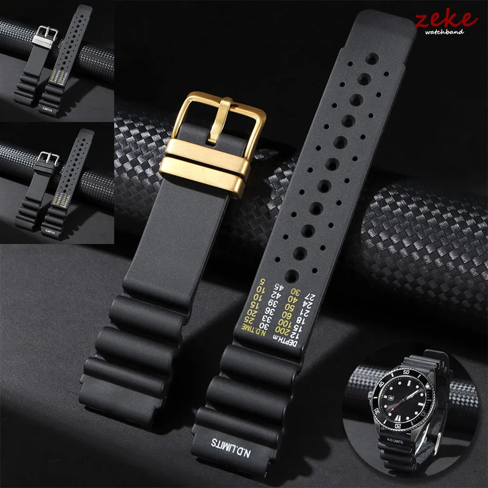 ND Limits Diver Silicone Rubber Strap 20mm 22mm 24mm Watch Band for Seiko for Citizen for Water Ghost Men Breathable Diving Belt