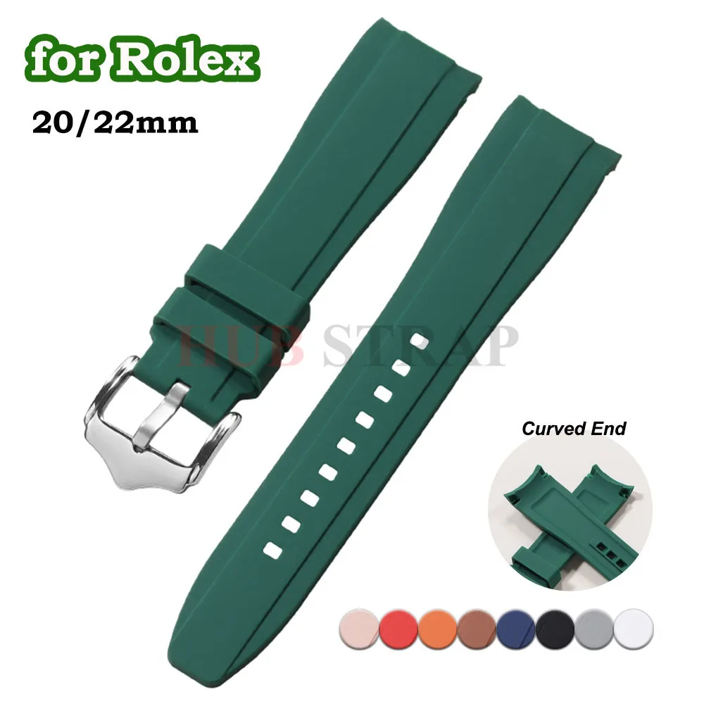 20mm 22mm Soft Rubber Watch Strap Curved End for Seiko for Rolex for Citizen Green Water Ghost Silicone Watchband Men Sport Band