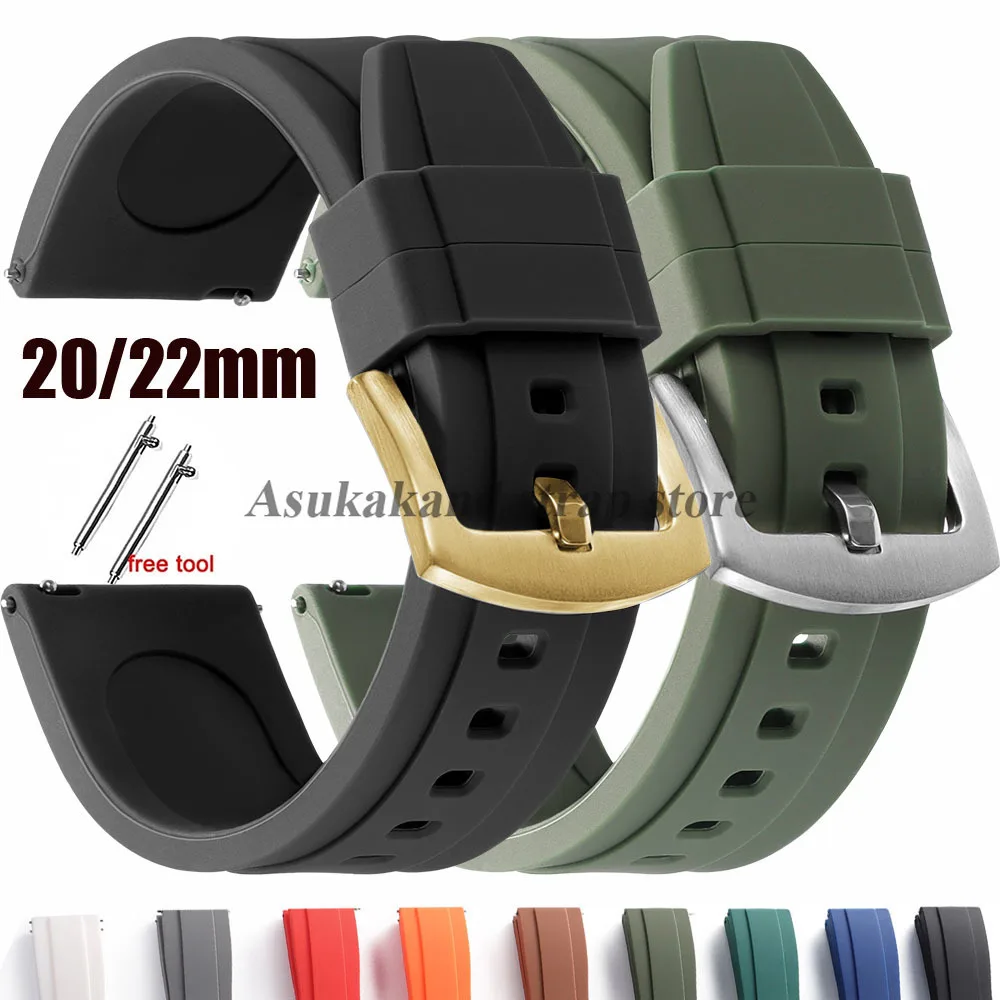 Black Silicone Strap 20mm 22mm for Seiko for Rolex Quick Release Rubber Watch Strap Soft Sport Bracelet Women Men Watch Band