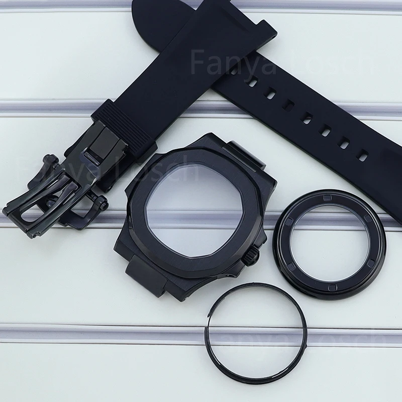 Black 40mm Stainless Steel Watch Case Rubber Bracelet For Nautilus Seiko NH35 NH36 NH38/34 Movement 30.8mm Dial 100M Waterproof