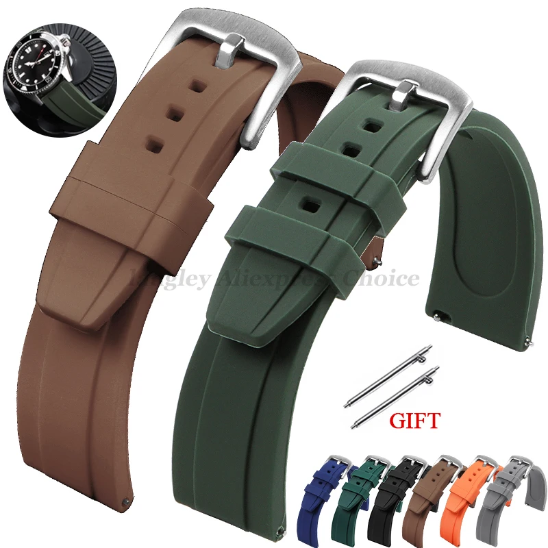 Premium Grade Vulcanized FKM Rubber Watch Strap for Seiko for Rolex 20mm 22mm 24mm Quick Release Watchbands Rubber Strap Tropic
