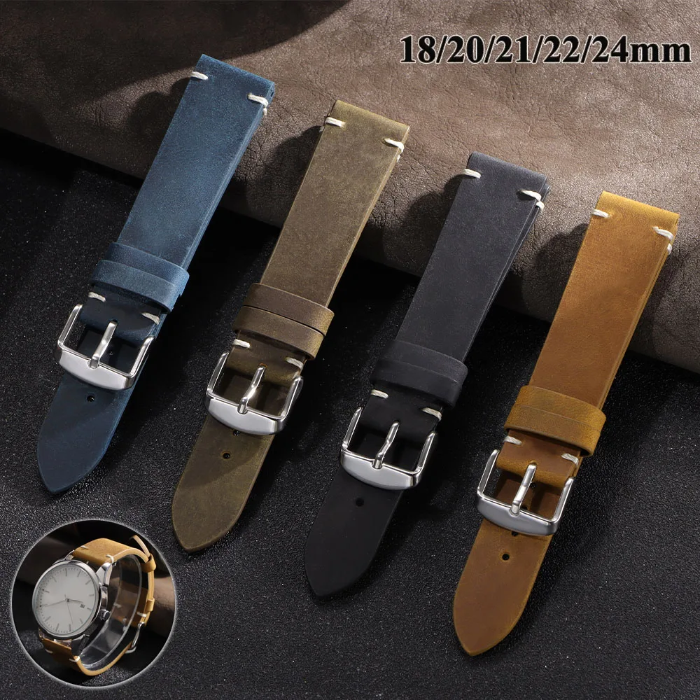 18mm 20mm 21mm 22mm 24mm Vintage Watch Band Stitching Crazy Horse Oil Cowhide Strap for Omega for Seiko Smartwatch Wristband  Read more