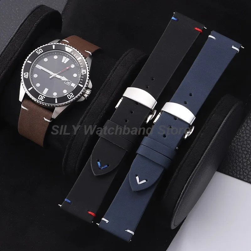 18mm 20mm 22mm Butterfly Clasp Leather WatchBand Strap for Omega for Seiko Smartwatch Bracelets Quick Release Business Wristband