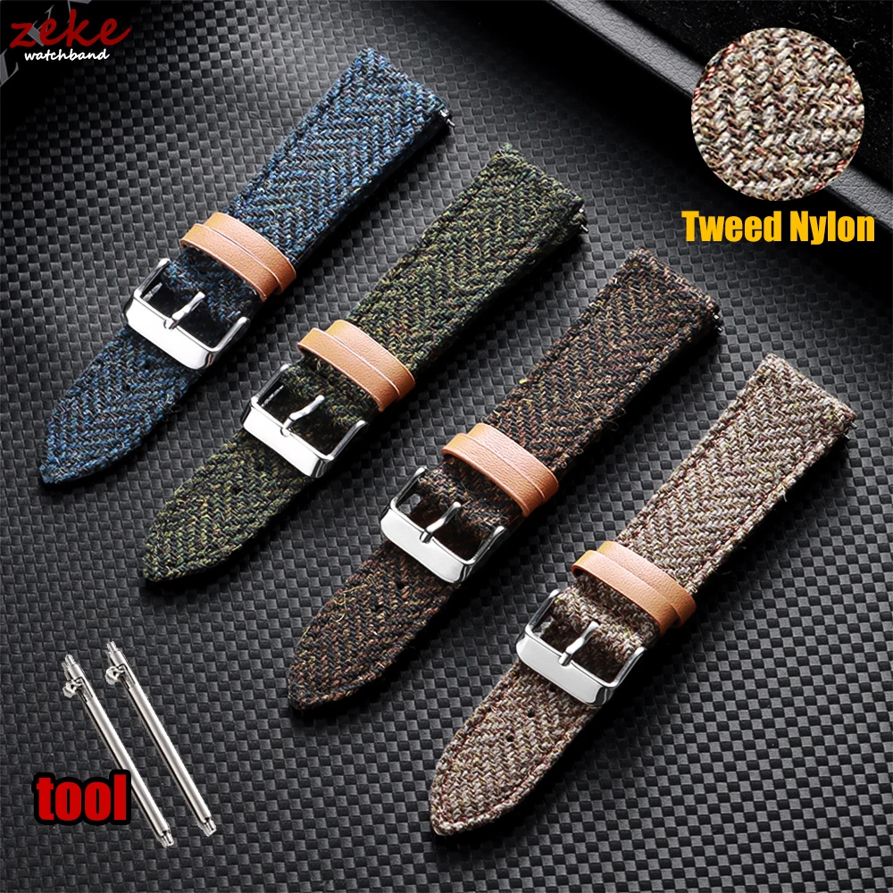 Quick Release Weave Bracelet Vintage Genuine Leather Tweed Nylon Strap 18mm 20mm 22mm for Omega for Seiko Smartwatch Watch Band