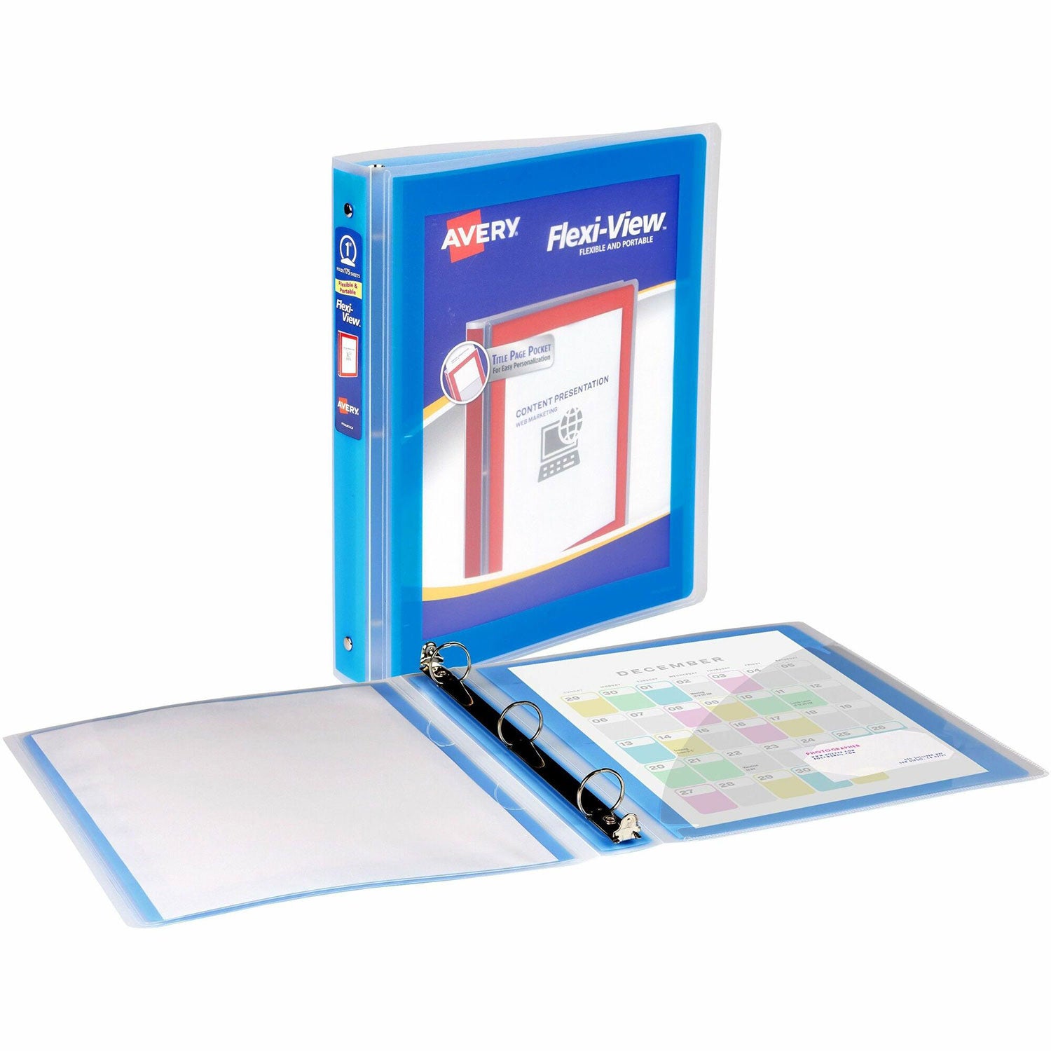 Avery 17607 Flexi-View 3 Ring Binder, 1 Inch Round Rings, 1 Blue Binder, 1" Binder Capacity, Letter, 8 1/2" x 11" Sheet Size, Blue AVE17607