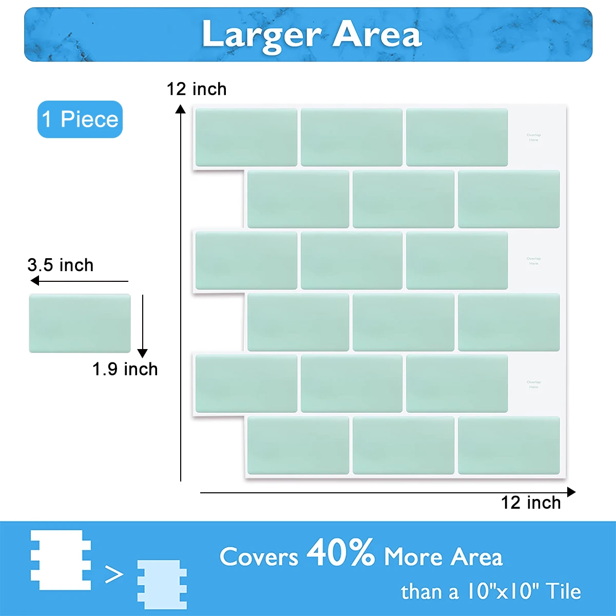 12 * 12 inch Self adhesive vinyl wallpaper shell and stick 3D Metro effect tiles kicthen- (1-sheet)