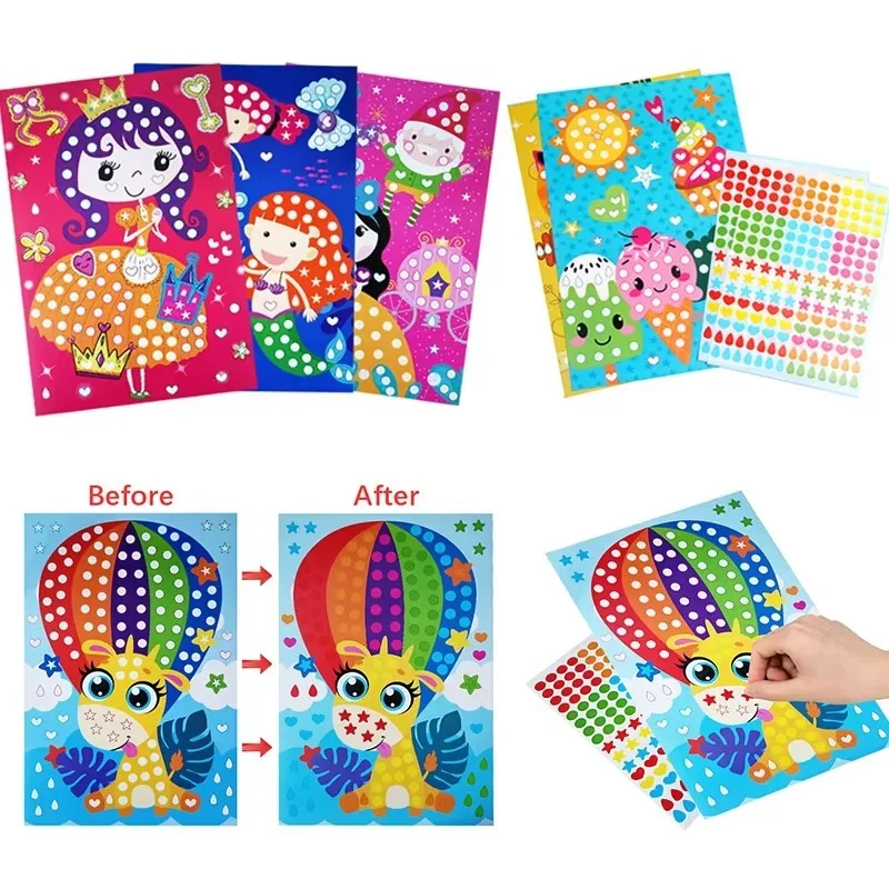 10 Sheet/set DIY Colorful Mosaic Sticker Kid Early Education Toys Cute Cartoon Animal Paint Dot Sticker Girls Boys Puzzle Gifts