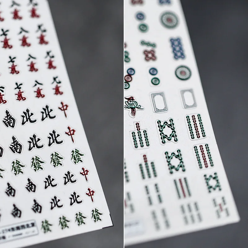 1 Sheet 5D Realistic Relief Chinese Mahjong Game Series DXNBZ Facai Adhesive Nail Art Stickers Decals Manicure DIY Ornaments
