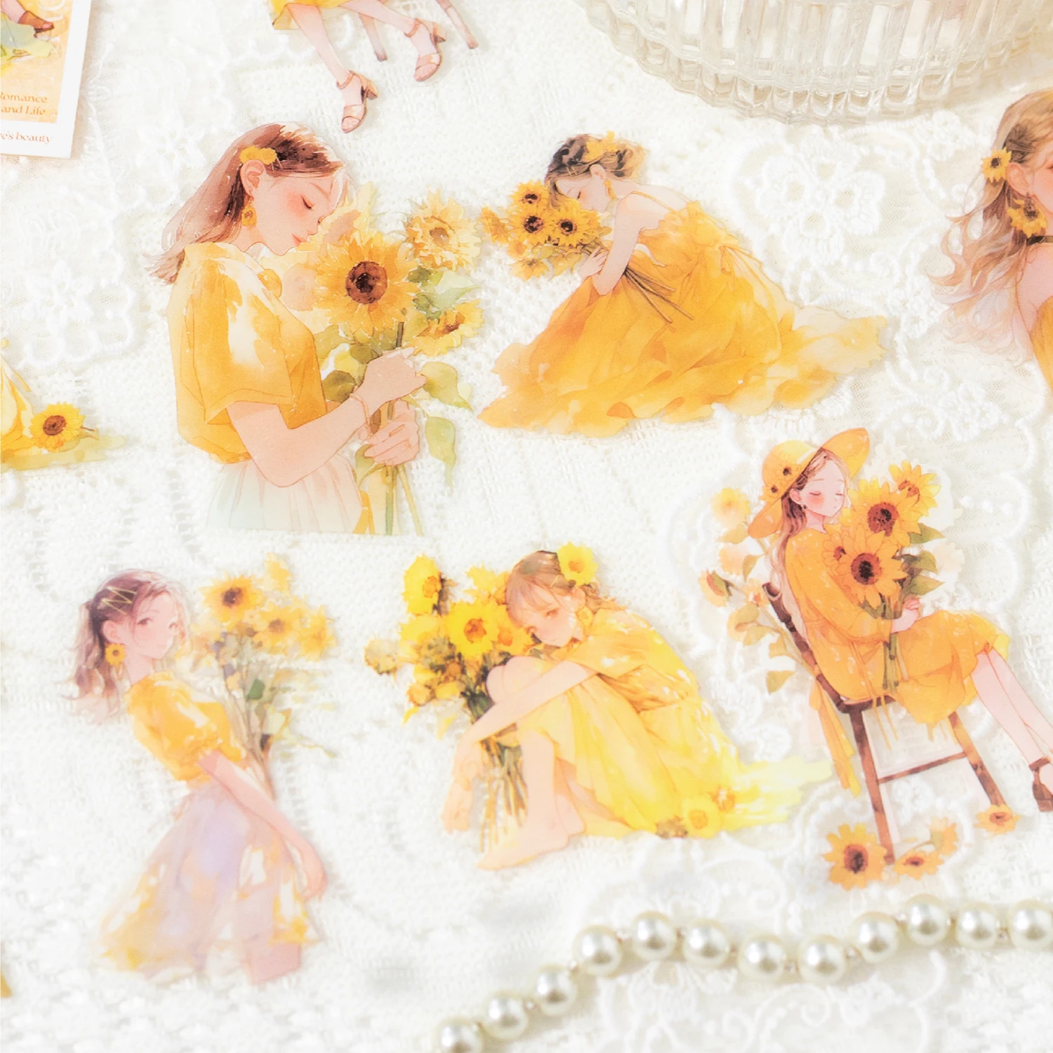 24 Sheets/Bag Character Holding Flower Theme Sticker Pack, Fit for Scrapbooking DIY Photo Frame, Collage Supplies, Scrapbook