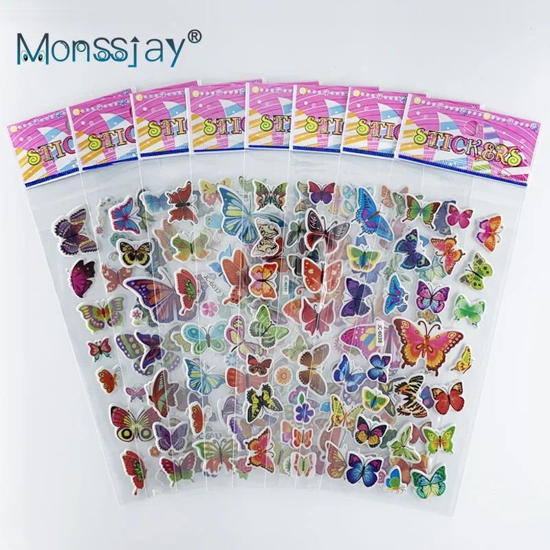 8 Sheets/Set Cute Cartoon Butterfly 3D Puffy Bubble Stickers Waterproof DIY Scrapbook Sticker Toys for Children Girls Gift
