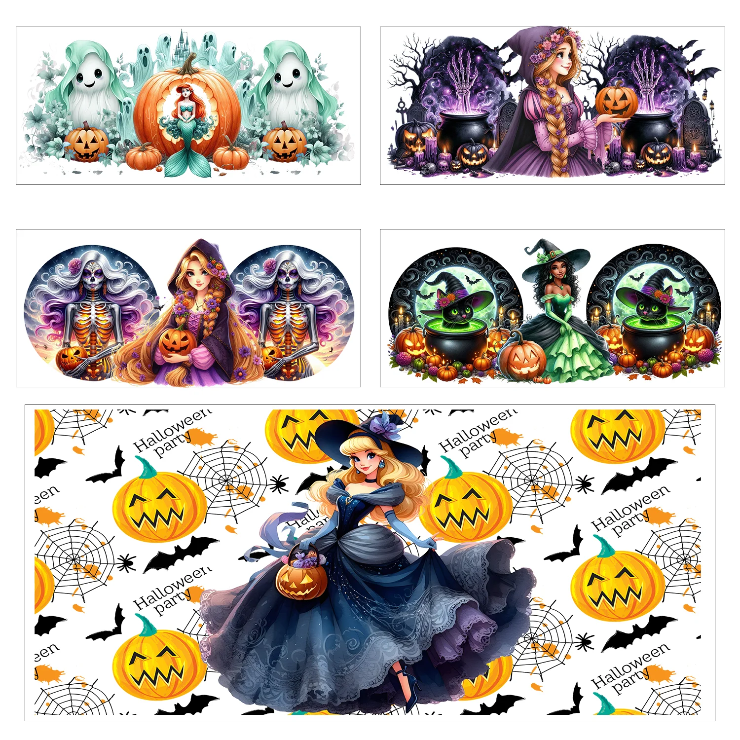 5/10 sheets Halloween cute Princess Series easy peel waterproof DIY Decals 3D transfers uvdtf stickers 16oz uv dtf cup wraps